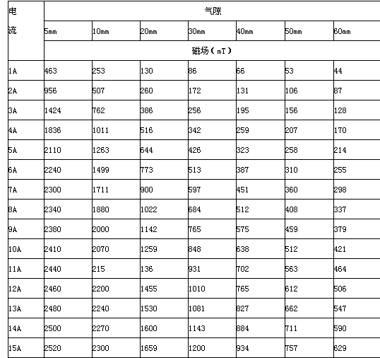 2.5 剩 磁:≤10mT (工作氣隙10mm時)